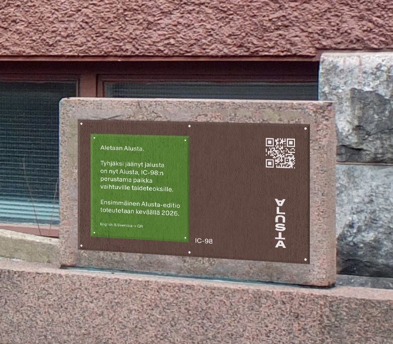 Joitakin kuukausia kerrallaan kestävien editioiden välillä Alusta on tyhjillään. Tämä tyhjillään – eli täynnä mahdollisuuksia – oleva muistomerkki on IC-98:n oma teos, alustus projektille. Alusta 00:n sisältö on aktiivisessa poissaolossa ja sen ylläpitämässä keskustelussa siitä, mitä paikalla pitäisi tai voisi olla. Tämä keskustelu on myös politiikan ytimessä: demokratialle keskeisintä on keskeneräisyys, avoin ja muuttuva prosessi lopullisten ratkaisujen sijaan.
